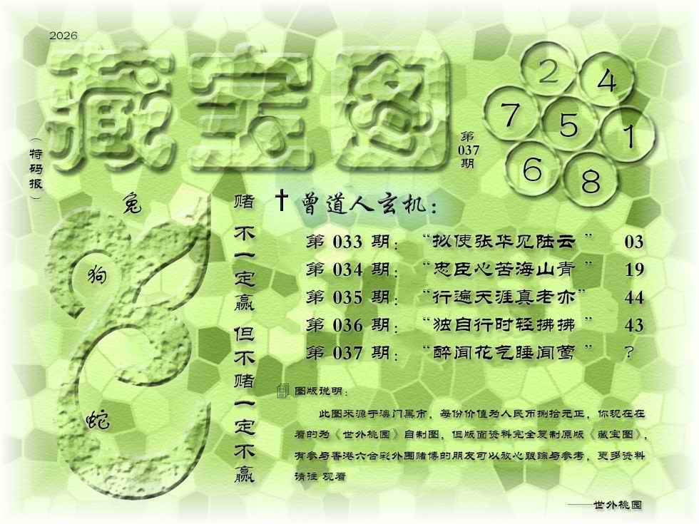 037期正版赌侠诗:【开?00】 今期双数必来报,七出三一有财现(送:零二四头开) 双数至尊有得猜,还敢自称是猛将(送:木火金行开)